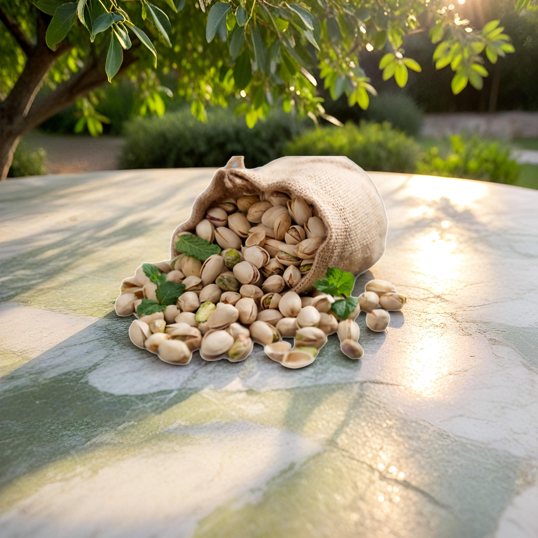 Our roasted pistachios, lightly salted, impress with their crunchy bite and a mild, balanced salty flavor.