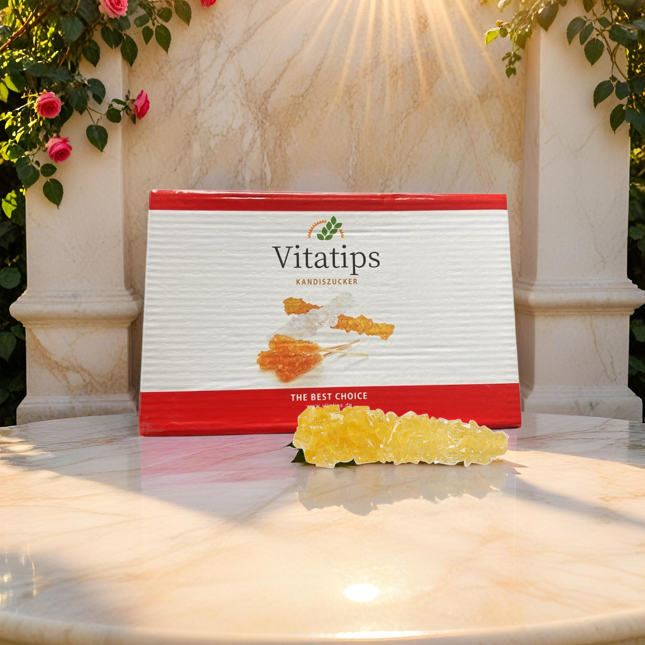 The simple rock sugar from Vitatips in the 4-kg package is ideal for cafés, restaurants, and events. Made from pure sugar and traditionally crystallized. Rock sugar not only adds a pleasant sweetness to tea and herbal infusions but is also known for its soothing and energizing effects.