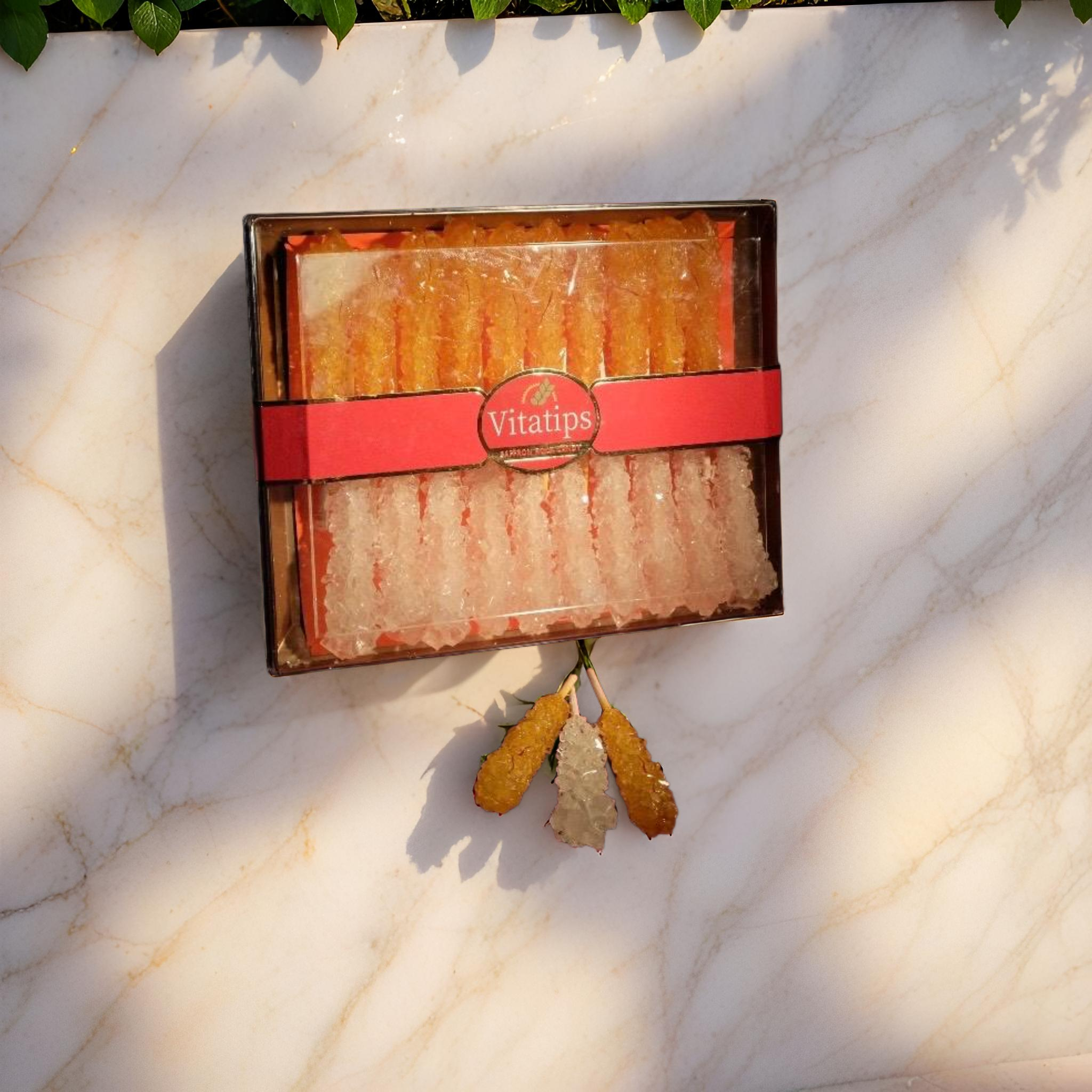 این نبات با زعفران اصل و مرغوب غنی شده و با رنگ طلایی ملایم و عطری خاص، تجربهای متفاوت و لذتبخش را برای علاقهمندان به طعمهای اصیل و متفاوت فراهم میکند.